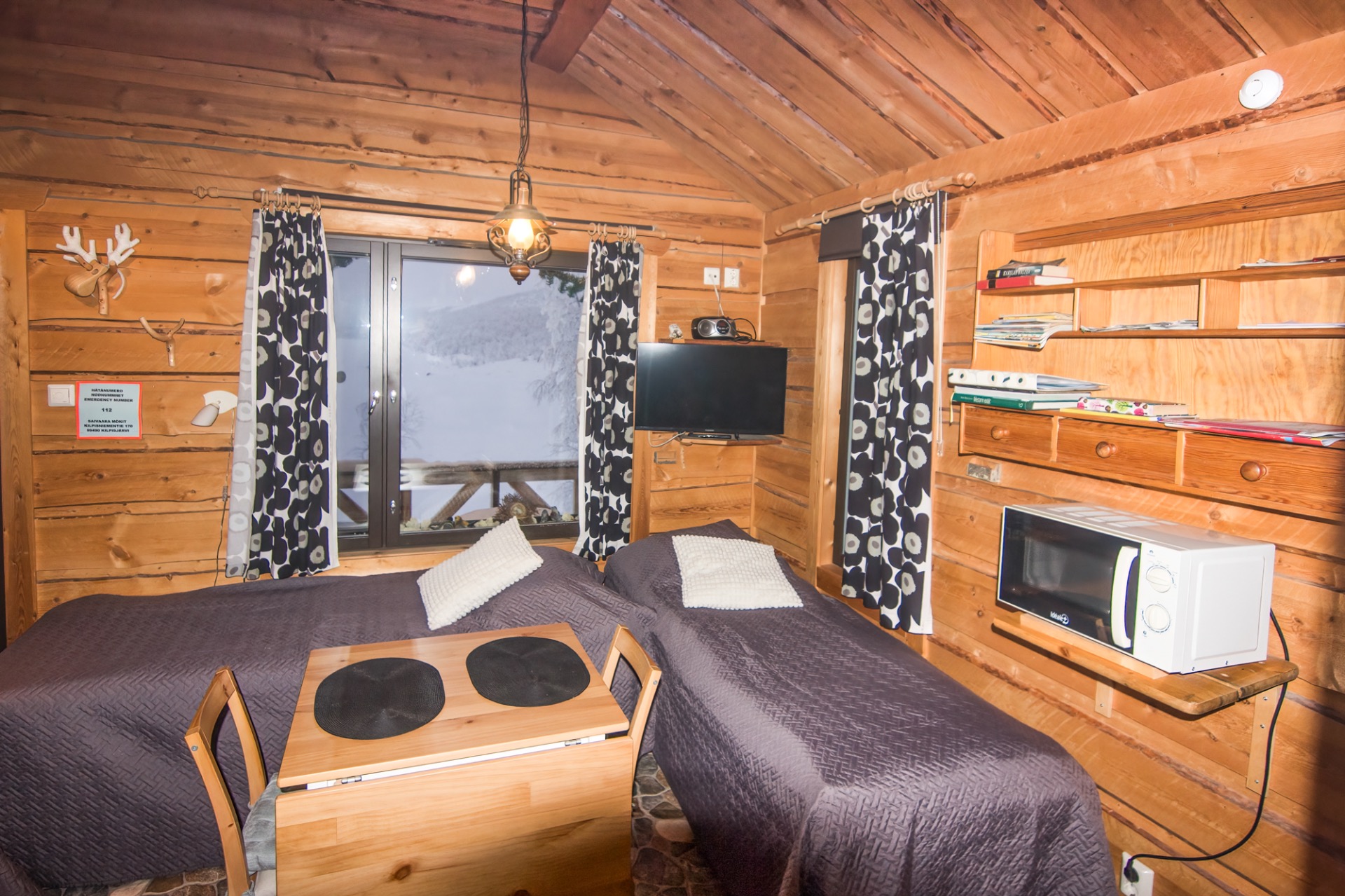 Das im traditionell finnischen Stil gebaute Ferienhäuschen ist ideal für zwei Personen und verfügt über eine holzbeheizte Sauna (ohne Dusche – aber fürchten Sie nicht, Wasser kann man am Saunaofen erhitzen!), eine kleine Wohnküche, einen Kamin, einen Fernseher und eine Waschmaschine sowie ein ausziehbares Schlafsofa. Der Raum umfasst insgesamt 27 Quadratmeter.